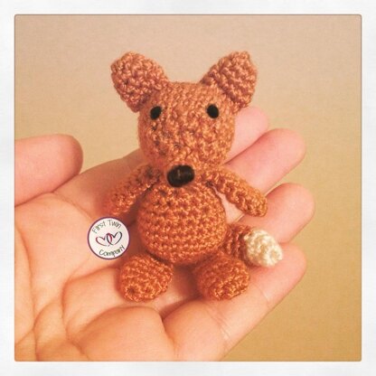 This pattern is for the teeny tiny fox pictured above. Finished fox is approximately 3 inches tall. Size will vary depending on tightness of stitch and amount of stuffing used.