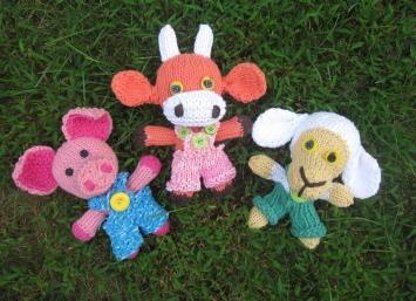 In this pattern we are introducing Mini Knitkinz - 7 inches tall - about half size of original Knitkinz. The first set of Mini Knitkinnz are Farm Animals - friends of Lizzy the Cow - Knitvana mascot. They are: