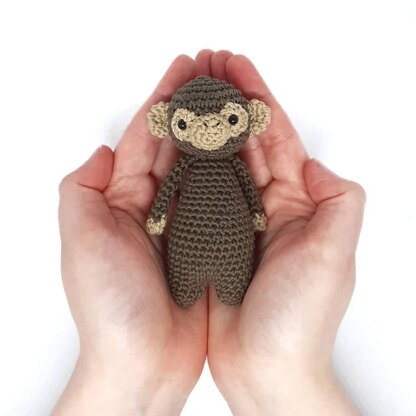 The monkey can be made with any yarn and crochet hook size of choice. The one in the picture is made with DMC Natura Just Cotton yarn and a 2.25 mm (size B) hook. It turned out 12 cm (4.7 inches) tall.