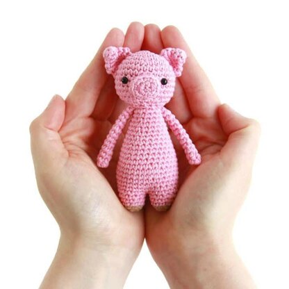 This is a pattern to make this lovely mini pig! The pattern includes many pictures and detailed explanations. It’s in PDF format and will be available for download immediately after purchase. The pattern is available in English. The pig can be made with any yarn and crochet hook size of choice. The one in the picture is made with DMC Natura Just Cotton yarn and a 2.25 mm (size B) hook. It turned out 12 cm (4.7 inches) tall.
