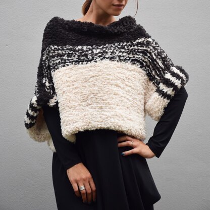 Un pull dalla linea essenziale e soffice come una nuvola. Crescerà velocissimo grazie all’utilizzo di ferri n° 9, regalandovi un modello esclusivo da indossare anche come accessorio sopra blazer e cappotti, in sostituzione al classico poncho.