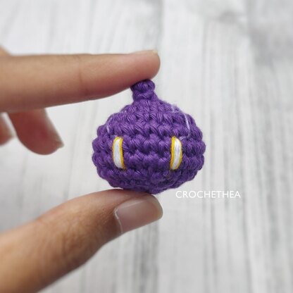 Mini slime amigurumi is about 3 cm in diameter and 2,5 cm height. I use small ply Balinese cotton yarn (sport yarn) and Tulip hook no. 2 (2 mm). Ornaments on anemo slime body are crocheted with embroidery thread and Rose lace hook no. 8 (0.95 mm).