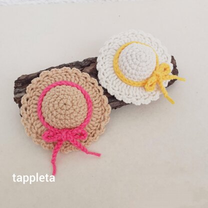 Crochet mini sun hat pattern Crochet Pattern PDF. A very quick and easy project! Make these cute sun hats in different colors as you like. It can be used for dolls, amigurumi toys as a keychain or a bag charm. Size approx. Hat 2 3/4” (7 cm.) in diameter. This pattern is suitable for those who have crochet skills for beginners and know the magic ring, single crochet, increase. Pattern is in standard American terms. You will need: - cotton blend yarn ( YarnArt Jeans), any yarn 4ply - hook B (2 mm.) - scissors, needle, glue You are free to sell the finished item made from this pattern. PATTERN CAN"T BE SOLD!!! Happy crocheting!!!