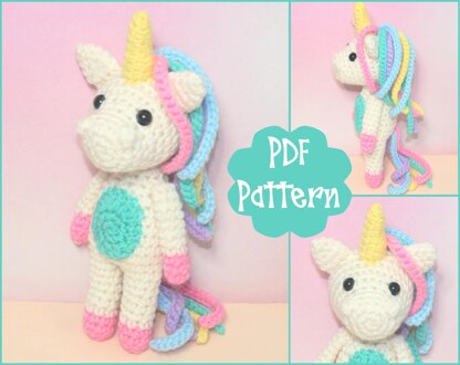 This listing is for a Mini Unicorn crochet pattern in pdf format, NOT a finished item. Finished unicorn will be approx. 8" tall when made with specified DK yarn. Pattern is provided in US abbreviations.
