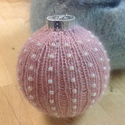 Make a luxurious tree ornament for your Christmas tree! It's made of luscious mink fiber and glass beads resembling lustrous pearls. It is quick to knit and not too difficult, being all stockinette.