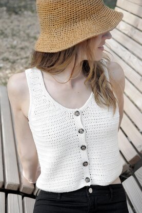 The MINNA_Top is cropped and ends at the navel when worn and works well with high waisted pants and skirts. The top is worked in rows, starting at the bottom edge. It is worked in one piece up to the armholes. From there the Front and Back are finished separately.