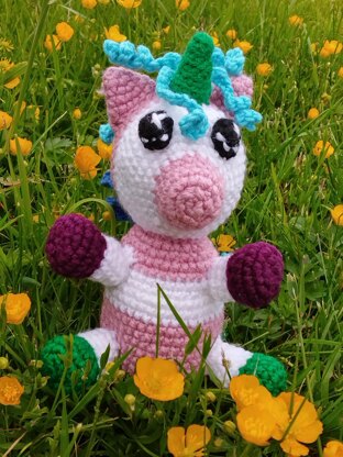 When tulips fade and clovers grow,a tiny June-e-corn begins to show.Crocheted from yarn in colors so bright,ready for cuddles and giggles, soft and light.