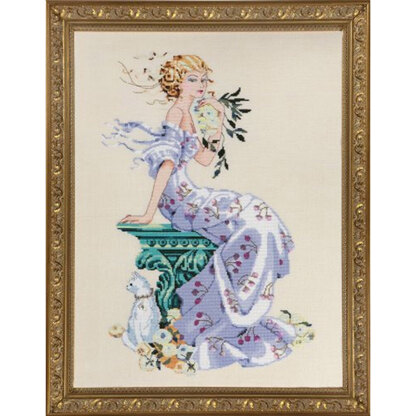 Model stitched on 32 count White Chocolate linen (065-094).