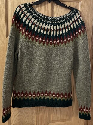 Based on the tradition of Icelandic circular yoke sweaters, Miracle Spirit is knit in the round from the bottom up. With long sleeves, and waist and bust-shaping this pattern works for lots of bodies. Short rows are worked on the back of the sweater to bring the front of the collar lower than the back. The stranded yoke is worked, and then the collar finished with Icelandic Bind off.