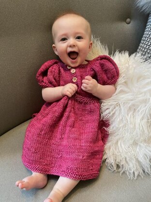 Miss Adeline has a vintage feel to it, and will become an heirloom piece to be handed down from baby to baby. Top-down construction, with a fitted chest, full princess skirt and puffy sleeves. This looks just as good with the buttons worn in the back as they do in the front. Designed for worsted or DK.