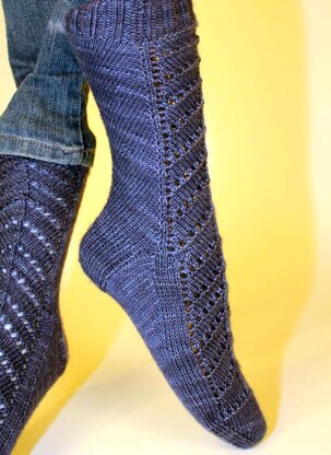 These socks are an ode to Miss Lemon. The wedge pattern which runs down the front of the sock pattern reminds me of lemon wedges. And for the back, I chose to replicate the slight fabric bias on the wedges and added a 'seam' down the back of the leg, reminiscent of the seam on stockings in Miss Lemon's time. I've always been fascinated by stories that women used to draw the seams on the back of their legs to give the illusion of wearing stockings, either in theater or during times of war shortages.