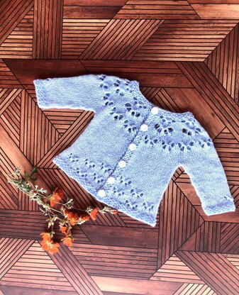 Miss Una Cardigan is a classic cardigan with pretty lace. This is knit top down, with ¾ length or long sleeves. The lace is charted and written out.