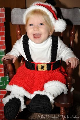 This pattern includes the skirt & headband ONLY. Pair it with the Missy Claus Apron & Hat for a cute holiday photo shoot. You can buy the ebook with both patterns at a discount.