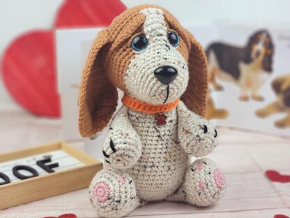 You will need Approx. 150g of main color, less than 50g of accent color. Worsted weight #4 A pair of 21 mm safety eyes, 26 mm dog safety nose fiberfill Stuffing 3.25 mm hook Tapestry needle