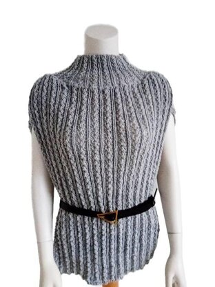 The project presents two technical challenges: transitioning from circular to flat knitting and executing cross-overlapping for the turtleneck. Accompanying this description is a comprehensive PDF document spanning four pages. It includes a chart, a series of photo tutorials, and written explanations designed to assist you in mastering the knitting process.