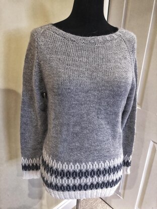 Lightweight jumper knitted from top down on circular needles. This jumper is warm and cosy and knitted slightly bigger to create a loose effect. Range of sizes from XS (32” bust) to XXL (42” bust) and can be altered to give longer body if desired. Best worked with worsted yarn to give the cosy feeling at the end. Worked with 3 colours, this pattern gives you the opportunity to get creative and make some bold design choices. Perfect all rounder for all seasons!