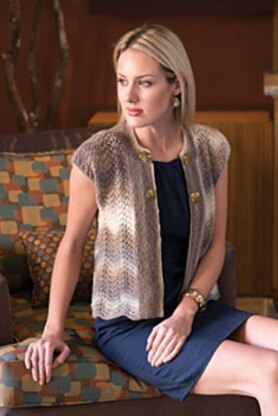 Current and stylish, the feather and fan stitch easily mimics a chevron pattern that is enhanced by the self-striping yarn. The lacy, open stitches provide beautiful drape and added interest. Put the finishing touch on this wardrobe essential by attaching unique, decorative buttons to make it your own.