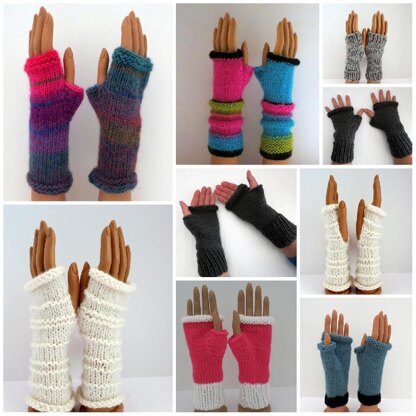 This pattern has instructions for knitting three styles of fingerless mittens…a thumbless mitten, an abbreviated thumb gusset, and a full thumb gusset. This pattern also includes 3 different cuffs and three different mitten tops. There are 27 possibilities for your mittens. Easy-to-follow instructions will guide you through creating your own mitten designs. You simply select the size, cuff, thumb and top design. Stitch counts and row by row instructions are provided.