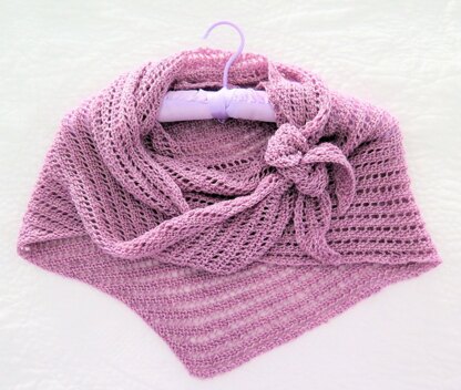 Designed in a boomerang shape, this scarf is all garter stitch and eyelets, using a simplified, on the bias version of the lovely technique commonly known as One Row Lace Stitch.