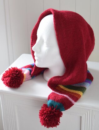 The pattern for the scarf and hood duo is written in your choice of FOUR yarn weights - Sport, DK, Worsted, and Chunky. Styles for this combo can features a long or short scarf, with vertical or horizontal stripes, and the option to knit the hood in two colors.
