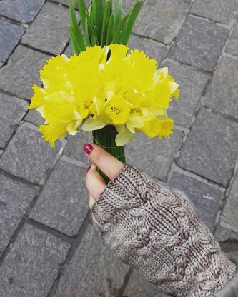 Mocaccino are pretty fingerless mittens, with simple cables. These mitts are worked in the round, seamless and cables are only on the back of the hand.