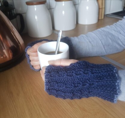 The pattern is a multi-sized pattern, and the finished length of the mitts are 17 [19; 20] cms long, suitable for adult hand sizes S [M; L].