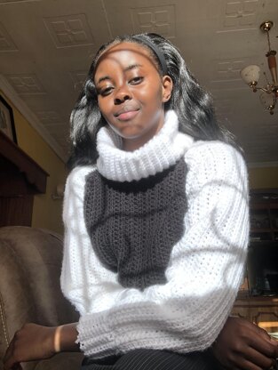 PATTERN NOTES Hello Bobo Stitches fans!, Happy 2023! We are kicking off the year with this regal mock neck sweater for keeping warm during winter or cold season. The polo neck mock design is adaptable to be worn during winters as it acts as a good shield from cold or when it gets drafty. The sweater in the pictures is meant for size small, adjustment for sizes is provided in the pattern below The main colors used are white and black however the sweater can be made in one color or a combination of different colors. Instruction notes The instructions are in sizes Small, Medium and Large (S,M,L)