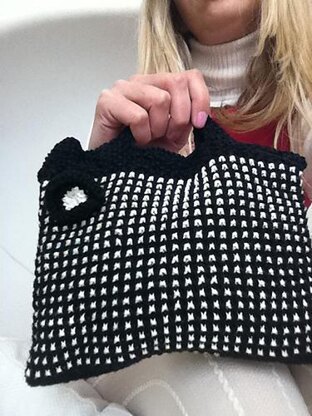 Here is a nice visually effective bag I designed which combines two different colour yarns into a knitted slip stitch pattern.