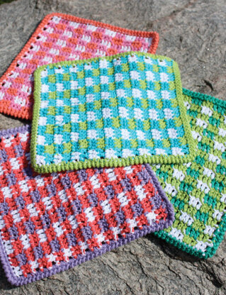 Mod Gingham Dishcloth in Lily Sugar 'n Cream Solids ist eine Kostenlos Anleitung zum Crochet von Lily Sugar 'n Cream, die als Herunterladbares PDF in den folgenden Sprachen verfügbar ist: Englisch. Besonders geeignet ist sie für alle, deren Können bei einzustufen ist. Probiere sie noch heute aus und kreiere dein nächstes Meisterwerk!