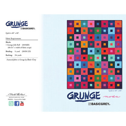Moda Fabrics Grunge Quilt - Downloadable PDF ist eine Kostenlos Anleitung zum Quilting von Moda Fabrics, die als Herunterladbares PDF in den folgenden Sprachen verfügbar ist: Englisch. Besonders geeignet ist sie für alle, deren Können bei Fortgeschritten einzustufen ist. Probiere sie noch heute aus und kreiere dein nächstes Meisterwerk!