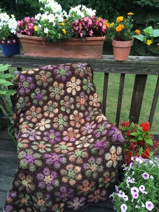 This is a modern and elegant hexagon motif to make excellent use of your favorite self-striping yarn. 3 rounds in a self-striping yarn and 1 round in a coordinating solid and you will quickly complete your motifs. Join using Join As You Go or slip stitch the motifs together for a beautiful and luxurious throw.