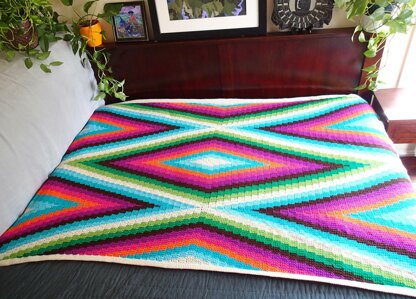 Pattern pdf includes: • more than 30 detailed color photos including photos of techniques for beginners • yardage requirements for each color as well as for the whole blanket • instructions for a border and fringe variations • color chart