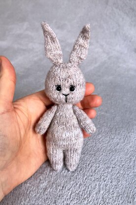 This is a knitting pattern for a stuffed toy tiny mohair bunny. The toy is knitted on 2 needles and then sewn. ‘