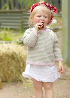 Molly combines stripes and lace in the cutest way. A clever back placket and underarm gussets as other small details which make for a well fitting and sweet sweater. The lace pattern is both written AND charted. This pattern has been professionally tech edited. Information Ages 6 months (1, 2, 4, 6, 8, 10) years Actual chest (child) 45 (48, 53, 57, 62, 66, 70) cm / 18 (19, 21, 23, 25, 26.5, 28)” Yarn Heritage organic merino 100% merino wool. 50g = 167 m /182.5 yds I used 3 colours MC1 - main colour (I used pink) 192 (240, 288, 336, 365, 480, 528) m / 210 (262, 315, 367, 399, 525, 577) yds MC2 - alternate stripe colour (I used green) 192 (240, 288, 336, 365, 480, 528) m / 210 (262, 315, 367, 399, 525, 577) yds CC - contrast colour (I used cream) Approximately 10 grams / 1/2 oz, split into two balls of equal size as you will be working two sections with this yarn in the same row. Needles I work in the round using the magic loop method. If you prefer to use a different method please choose your needles accordingly. 3.25 mm (US 3) 100 cm / 40” circular Or size needed to achieve gauge Notions Darning needle Seven stitch markers 2 holders or scrap yarn. Gauge 26 sts x 38 rows to 10cm / 4” after blocking but in a relaxed state (the swatch and the knitter!) Notes This top is worked in the round using your preferred method.