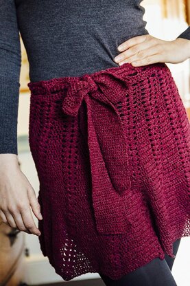 It uses a total of 7 balls of Rowan's panama and finished measurements are; Actual waist 76cm/30in Length 46cm/18in Circumference at bottom 180cm/71in