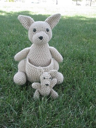 Let this wonderful Mommy and Joey Kangaroo hop into your heart. Joey can hop a ride with mommy or you can play with him out of her pouch. Mommy is 11" tall Joey is 4 1/2" tall For this pattern you will need to know: (sc) single crochet (ch) chain (sc2tog) 2 sc together (2sc) 2 sc in one sc (F/O) fasten off repeat between ** slip stitch Magic ring