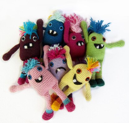 This Amigurumi pattern is so much fun and completely addictive! The Monsters with Mohawks are worked from the bottom up with legs and arms joined as you go, so there is no sewing or seaming involved. They are the ultimate scrap buster, don't throw your leftover pieces of yarn, use them to create a funky Mohawk for this cute little monster! The best bit is that each monster uses less than a 100gram skein of Worsted/10 ply yarn.