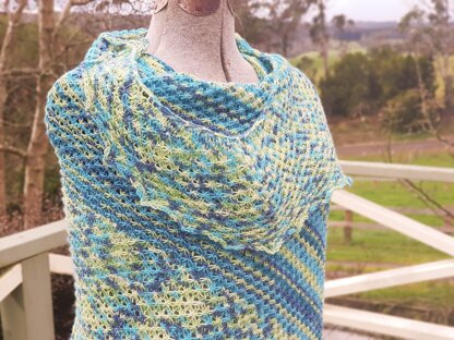 Moody Daisy is a pattern perfect for confident beginners or anyone looking for an easy comfort knitting project. The pattern is very easy to memorise and to knit. It makes a great travel knitting pattern as the yarn won't take up much room and it is simple repeat where you don't have to concentrate and you might be able to wear your shawl sooner than you think! Chart as well as written instructions are included. Size: Approximately 148 cm (58") long and 94 cm ((37") wide Materials: Fingering Weight Yarn, 200 g total, 100g each in two complementary colourways, about 420 m per 100g Yarn Suggestions: King Cole Summer 4 ply Sea Breeze and Neptune West Yorkshire Spinners Blue Lagoon and PeacockKnitting needles: Circular knitting needle 3.25 mm at least 120 cm (47") long Tip: go up a size or two if you like an even more drapey fabric.