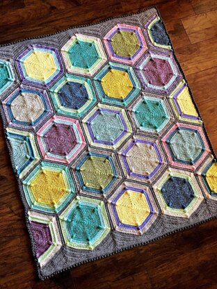 Named for its resemblance to moon boots and for those outlandish bobbles, Moon Landing is a unique hexagon blanket that you can make using three different yarn types of a similar weight. Of course the same yarn can also be used throughout. This piece is perfect for any space from a newborn’s crib to a college dorm room. With clever color choice, anyone will enjoy this modern and striking blanket design.