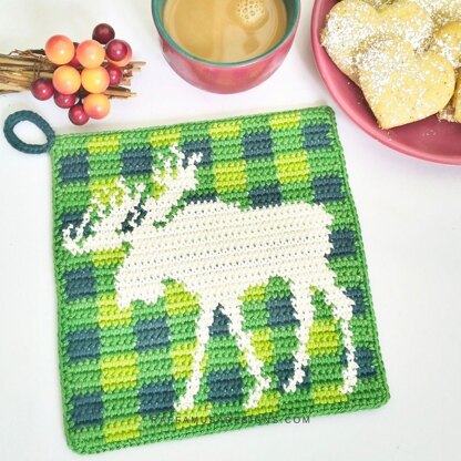 This tapestry crochet Moose Potholder is a beautiful hot pad for your kitchen decor, and it is perfect for the Fall and the Holiday season!