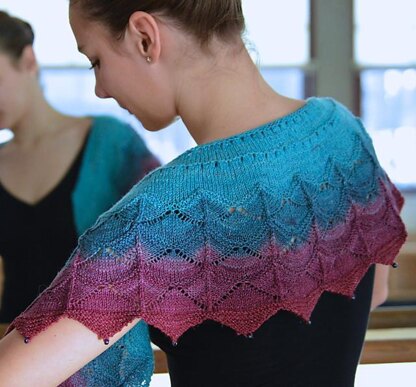 Morgentau shawlette just takes one skein of fingering weight sock yarn and therefore will give you the opportunity to use this one special skein or create a fast, beautiful gift. If you wish to make it bigger, there will be several possibilities offered. One of them is to use sport or dk weight yarn. Please consider that this will take more yardage than the recommended amount for fingering weight yarn. There are also options for easy beading to make your piece even more special. This pattern works very well with gradient dyed yarn.