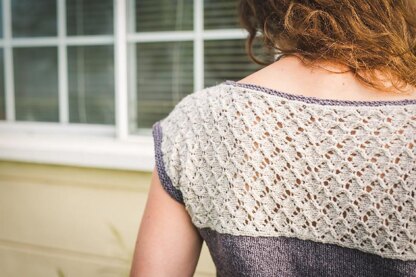 Morning Mist is a comfy but elegant spring top featuring a textured lace panel on a stockinette body. Cotton Comfort by Green Mountain Spinnery is a wonderful cotton wool blend yarn that is warm yet breathable, making a perfect garment to take you into the warmer, or cooler months. I love lace back shirts, but chose a pattern that wasn’t too open to avoid seeing straps underneath. The simple drop-shoulder body creates its own cap sleeves, making for quick knitting, and comfortable wearing. (Totally seamless!)