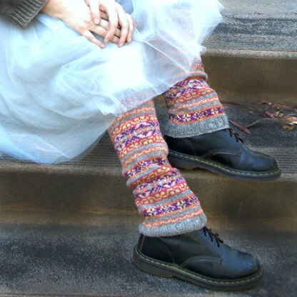 This is a pattern for a pair of leg warmers, worked from the bottom up and in the round, using the Fair-Isle knitting technique.