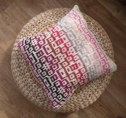 Striking mosaic work has been used to bring this summery cushion to life. It really looks a lot more complicated than what it is , simply working one colour at a time (there is only 2 !) , either knitting or slipping stitches as you go along. Chart and written instructions available.