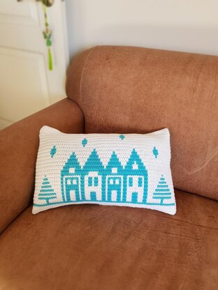 BONUS FREE PATTERN comes with the cushion pattern. It is a small table runner with a similar house design.