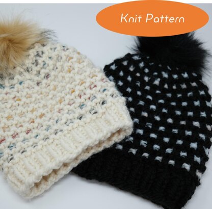 My samples use Lion Brand's Thick & Quick yarn, which comes in a huge variety of solid and variegated colors. But any #6 super bulky yarn with similar yards per grams will work. My samples have 6" faux fur pom poms, but you could make yarn pom poms, or omit them altogether. The hat will be cute either way!