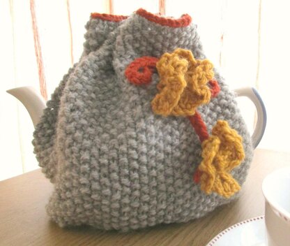 This is a pattern for the Moss Stitch and Flower Tea Cosy, part of the Make at home range of knits for the home. This is a really easy pattern good for beginners. It is in moss stitch, with eyelets and a plaited tie to secure. Measurements 24 cm wide x 19 cm deep (16 cm to eyelets). The tie is finished with knitted flowers, easy to make by decreasing.