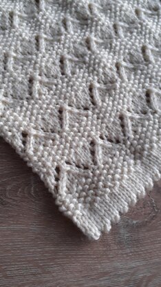 Knitted in a soft Aran blend, this moss stitch and lace blanket is edged in delicate picot edging.