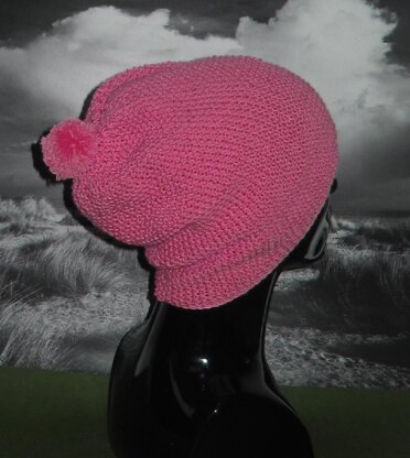 Moss Stitch Bobble Slouch Hat (Seed Stitch)