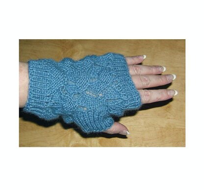 These fingerless gloves, or gauntlets, have a wonderfully textural lace pattern, part of which resembles the wings of a flying moth. This is not a very difficult lace pattern. You will need to know how to knit in the round, and pick up and knit stitches and make a provisional cast on.